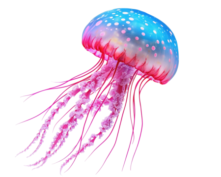 Colorful jellyfish isolated on transparent PNG background image perfect for marine-themed illustrations or underwater designs