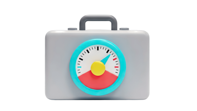 3D Business Icons: Briefcase Calendar Target Coffee Cup and Laptop Arranged Together portfolio luggage isolated on a transparent background