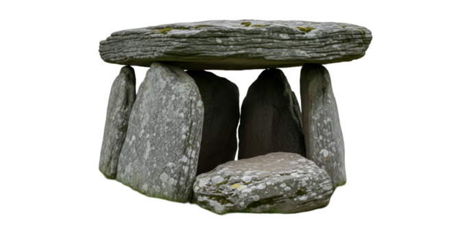 Ancient stone dolmen table isolated on transparent background