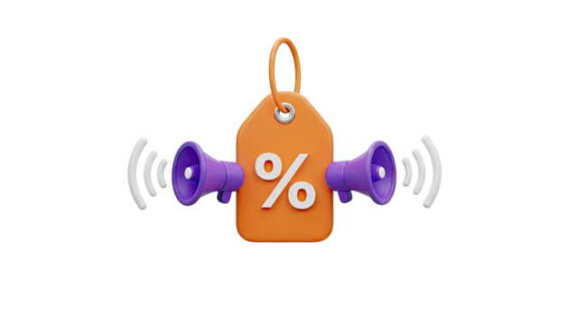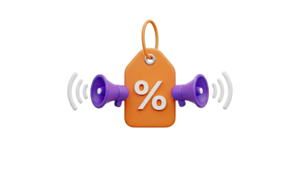 3D Megaphone Announcing with Lightning Bolts on White Background