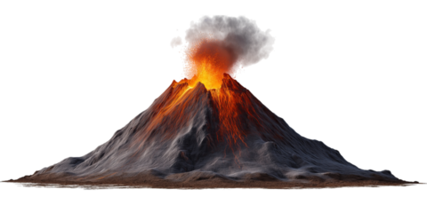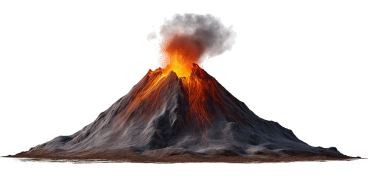Active Volcano Spewing Lava and Ash isolated on a transparent background