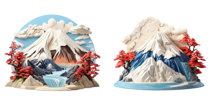 Mount Fuji mountain isolated on white, perfect for Asian landscapes and natural wonders content