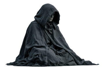 A young woman with a melancholic gaze stares intently, isolated on transparent background, conveying a sense of introspection and quiet contemplation