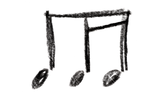 A minimalist pencil sketch of musical notes isolated on a transparent background, ideal for diverse design projects.