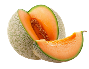 Slices of cantaloupe melon isolated on transparent background. PNG