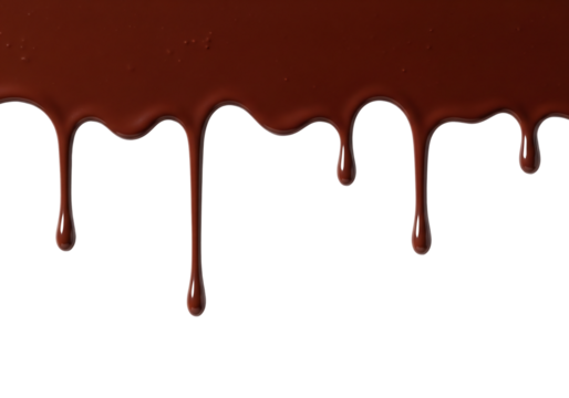 melt chocolate dripping line from the top, isolated on transparent background, copyspace