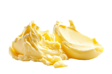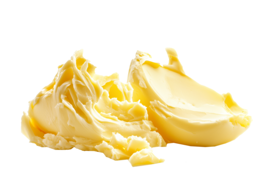 Melted creamy butter displays its smooth, rich texture, perfect for spreading on bread or cooking isolated on white transparent background.