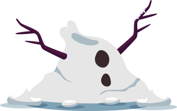 Melted snowman illustration transforming into a puddle, depicting end of winter and warming weather concepts