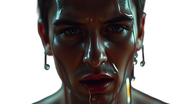 Melting Portrait of Woman with Dripping Paint Effect, Abstract AI Concept”