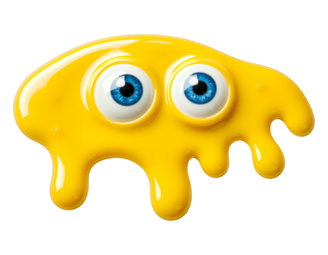 Bright Yellow Goopy Face with Blue Eyes, Glossy 3D Realism Illustration with Transparent Background