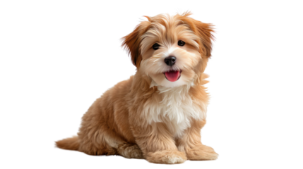 Sweet Puppy Portrait: A heartwarming portrait of a fluffy, tan-colored puppy with a sweet smile and playful expression. Its soft fur, inquisitive eyes, and wagging tail are sure to melt hearts.