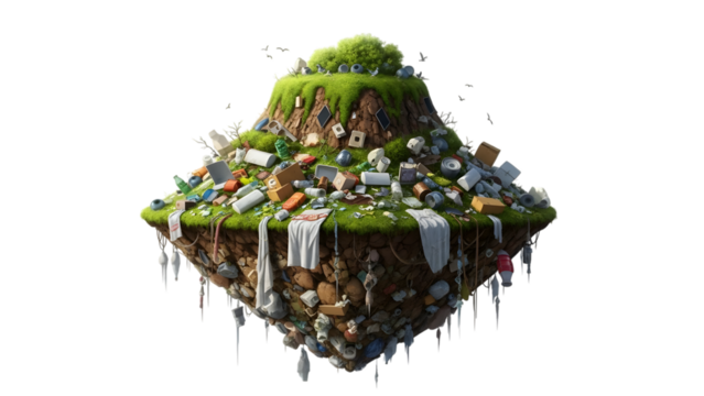 Polluted earth with trash and ice isolated on a transparent background pollution garbage