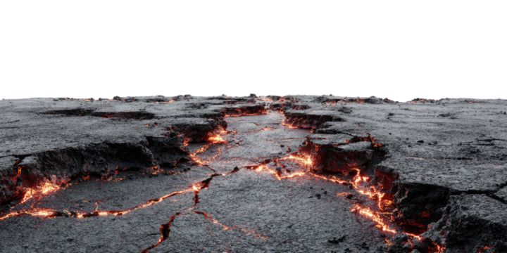 Flowing lava surrounded by cooling igneous rock on transparent background