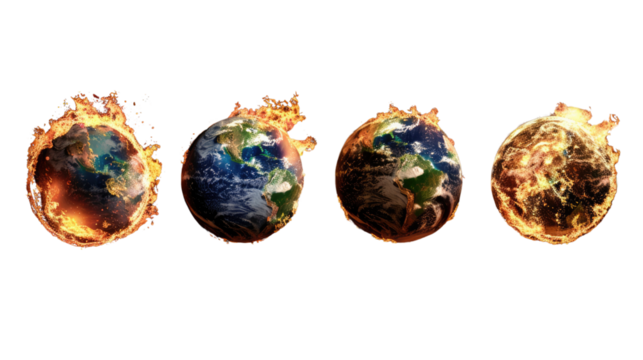 Global Inferno: A series of striking visuals depict Earth consumed by flames, representing the effects of climate change