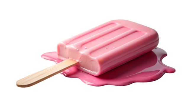 A vibrant raspberry popsicle melting gently on a sunny summer afternoon isolated on transparent background