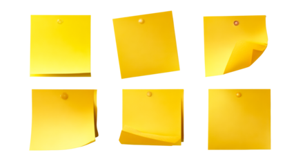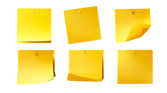Yellow sticky notes pinned on transparent background