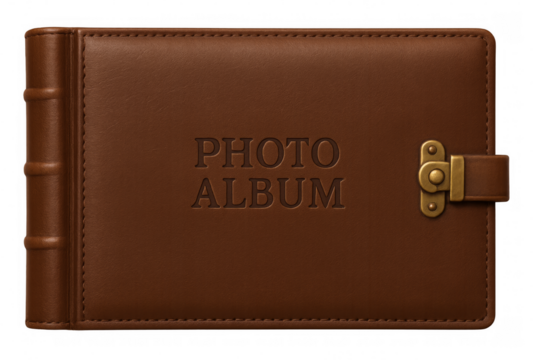 Vintage Leather Wallet with Antique Family Photos Nostalgia Memory Album Aged