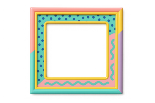 Vibrant 80s inspired picture frame with abstract patterns, perfect for retro designs and celebrating nostalgia