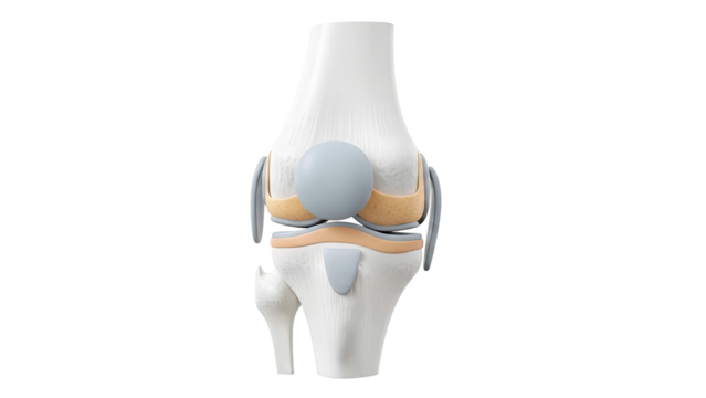 Knee joint pain highlighted on anatomical model isolated on white background
