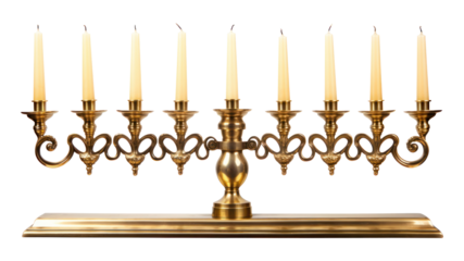 Isolated Classic Gold Menorah with Nine Candles