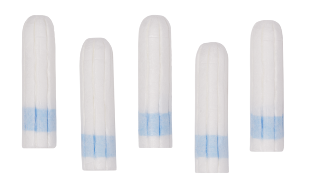 Feminine sanitary tampon in PNG isolated on transparent background. Hygiene care during critical days, caring for women's health. Monthly protection. Menstrual cycle.