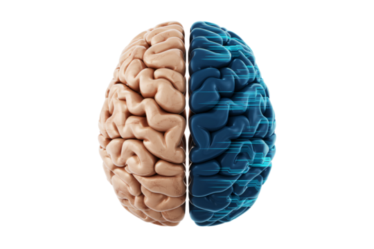 Human Brain Split into Creative and Logical Hemispheres in Dual-Toned Color Scheme on White Background for Psychology Illustration