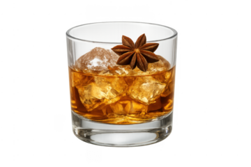 Whiskey drink in old fashioned glass with star anise