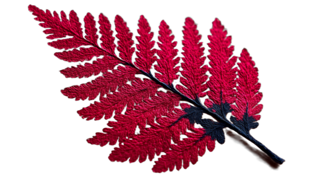 Ilustrasi daun pakis merah tua yang khas, detail dengan gaya seperti cat air (watercolor) yang indah.
