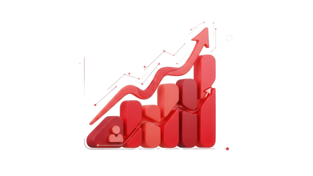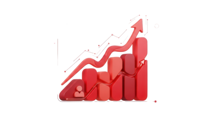 Abstract 3D red CRM chart icon representing sales performance metrics and client acquisition strategy on a secure digital interface.isolated on white background1