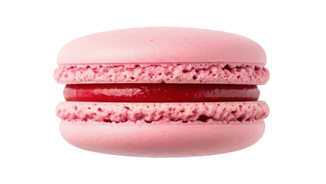Pink raspberry macaron isolated PNG on transparent background, delicious French dessert for patisserie and confectionery designs