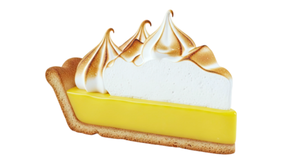 Lemon meringue pie slice PNG isolated on transparent background, delicious dessert with sweet meringue topping and yellow citrus filling