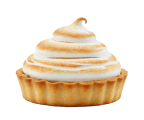 Lemon meringue pie slice PNG isolated on transparent background, delicious dessert with sweet meringue topping and yellow citrus filling