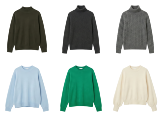 Cozy wool sweaters folded neatly, displaying neutral-toned knitting patterns, prepared for chilly weather against transparent backdrop