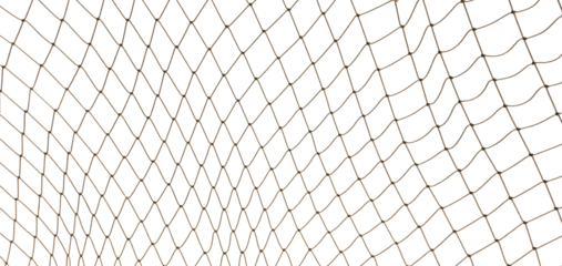 Football or tennis net. Torn rope mesh with holes on a white background close-up.