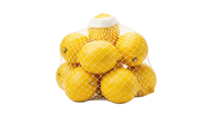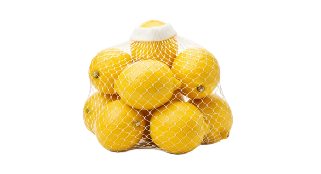Lemons in a Mesh Bag Fresh Citrus Fruits Yellow Produce for Sale Healthy Food Concept