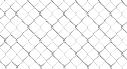 Seamless repeating pattern of metallic chainlink fence with silver isolated, transparent background