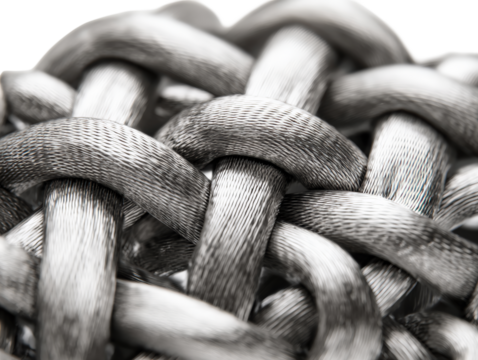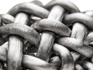 Close-up view of metallic hexagonal mesh pattern on a smooth surface showing intricate designs and textures