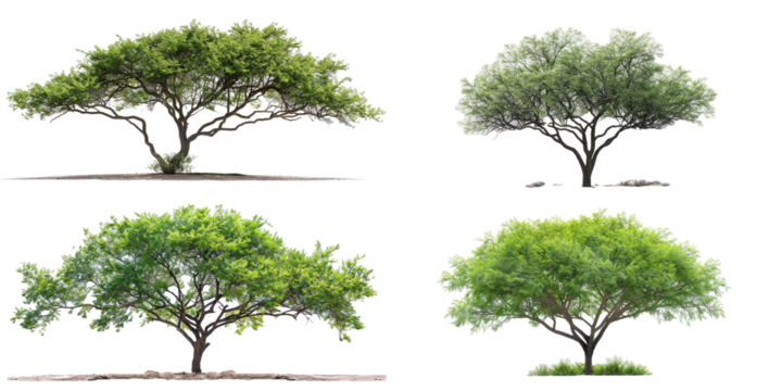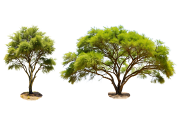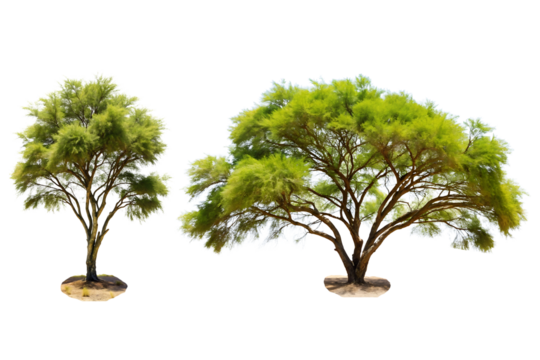 A desert mesquite tree with wispy leaves and thorny branches, Isolated on a Transparent Background