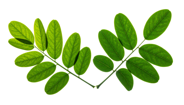 Two velvet mesquite tree branches with green leaves, isolated on transparent background