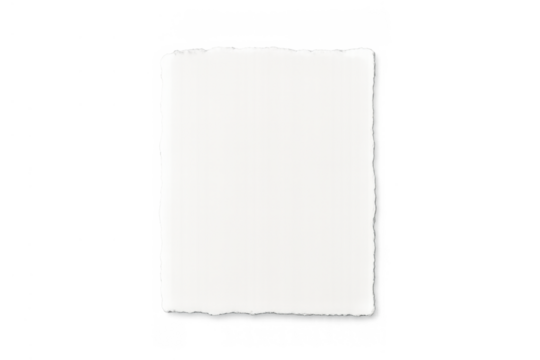 Torn paper piece with textured surface and rough edges, blank white note for message or background
