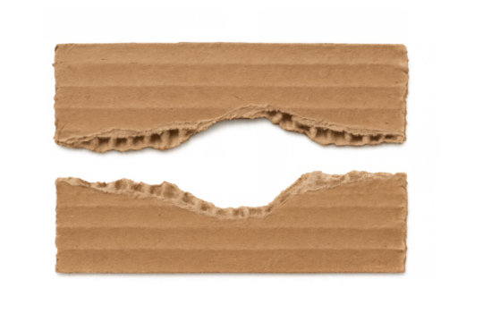 Torn corrugated cardboard paper pieces presenting rough edges, separating texture for design and banner concepts