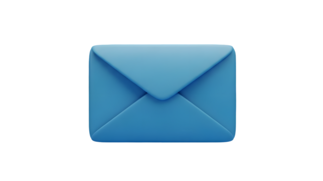 Blue square envelope icon with folded flap on white background for communication and messaging