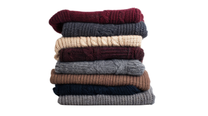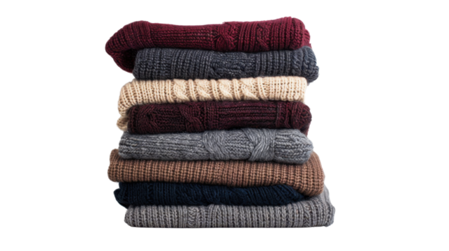Png Set Assorted sweaters stacked and isolated on a transparent background
