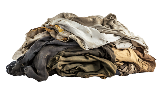 Pile of dirty clothes isolated on transparent or white background