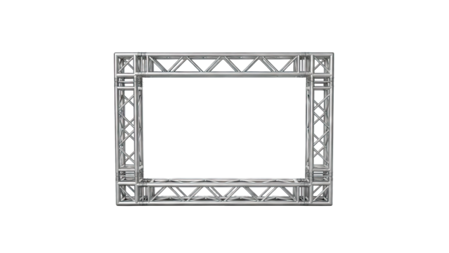 Metal truss structure set including silver, black, and weathered designs isolated. Stage, event, and construction elements.