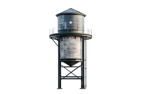 Vintage industrial water tower against a transparent background, showcasing historical architecture and design elements.