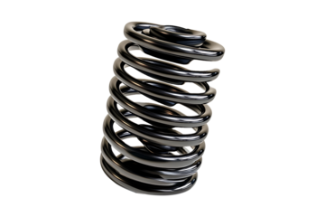 Rotating metal spring isolated on transparent background, ideal for physics, engineering, or industrial design projects