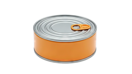 Closed metal tin can with pull tab, isolated on transparent cutout background
