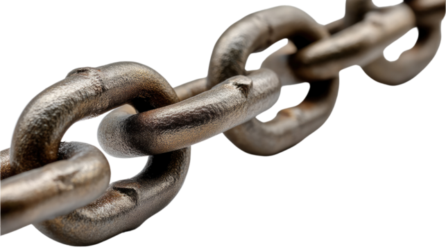 Interconnected Chains: A close-up shot showcases a series of interlocking metal chains, symbolizing strength, connection, and industry. Each link reveals detailed texture and solid construction.