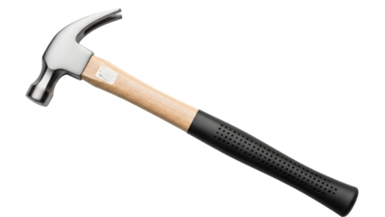 Claw hammer with wooden handle and metal head providing essential construction and diy capabilities, transparent background